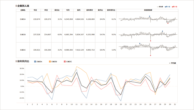 ・自社や競合チェーン各店舗の日別・時間帯別の推計来訪者数